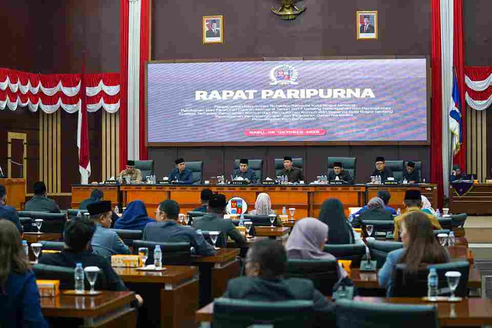 Sorotrakyat.com | Kota Bogor — DPRD Kota Bogor bersama Pemerintah Kota Bogor telah menetapkan Rancangan Peraturan Daerah (Raperda) tentang Pencegahan Penyalahgunaan dan Peredaran Gelap Narkotika, Psikotropika dan Zat Adiktif (P3Napza) serta Raperda tentang Perubahan atas Perda nomor 4 Tahun 2017 tentang Pencegahan dan Peningkatan Kualitas Terhadap Perumahan Kumuh dan Permukiman Kumuh menjadi Peraturan Daerah (Perda) pada rapat paripurna, Rabu (8/10/2025).