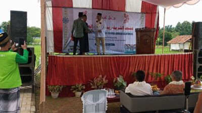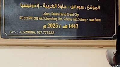 menyampaikan bahwa pembangunan masjid telah dimulai sejak September 2025 dan kini dapat dimanfaatkan oleh masyarakat sekitar. Rangkaian acara peresmian ditandai dengan penyerahan kunci masjid secara simbolis, pengguntingan pita, doa bersama, serta penanaman pohon di halaman masjid sebagai simbol kepedulian terhadap lingkungan. Selain itu, panitia juga menyalurkan bantuan sosial berupa beras dan Al-Qur’an kepada warga. Dalam sambutannya, Ketua MUI Kelurahan Sukamelang mengingatkan pentingnya memakmurkan masjid tidak hanya dari sisi bangunan, tetapi juga dengan menghidupkan aktivitas ibadah.